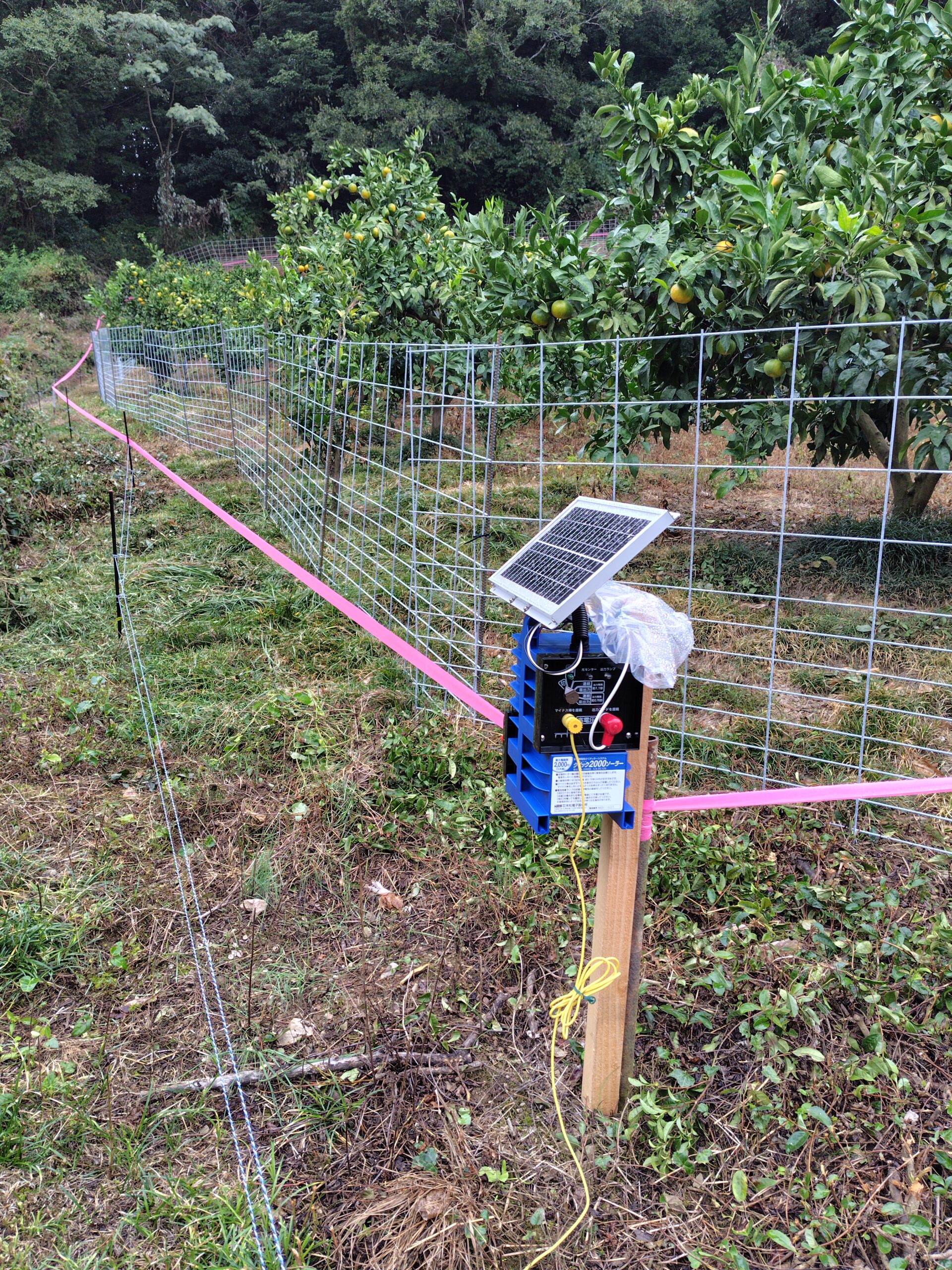 その入札で落札してくださった業者さんがワイヤーメッシュと電気柵を納品してくださり、夫と2人で園地に設置しました。